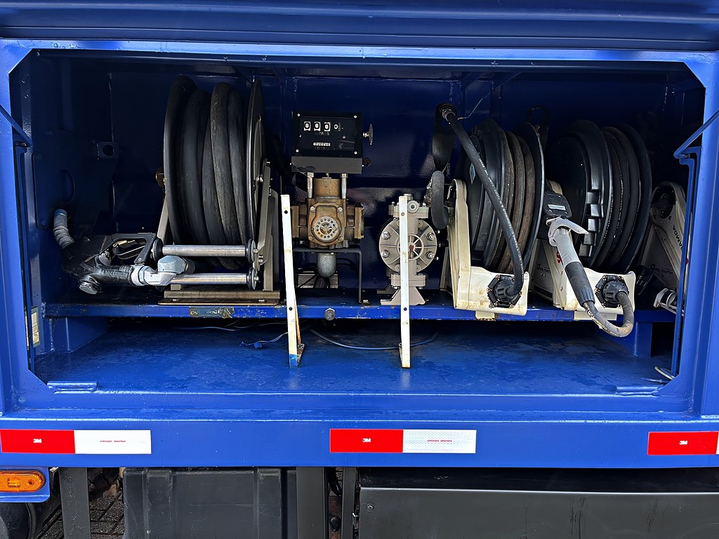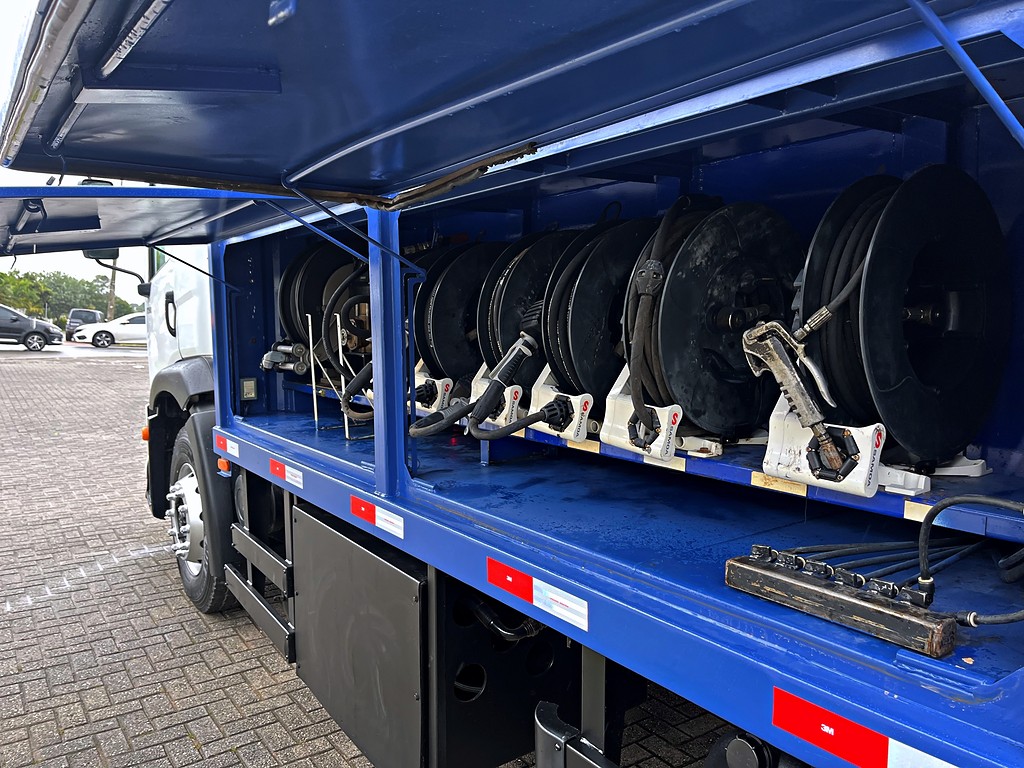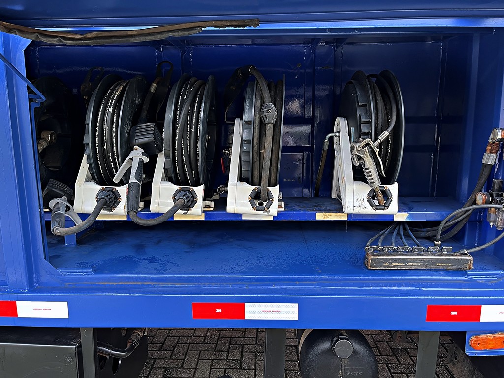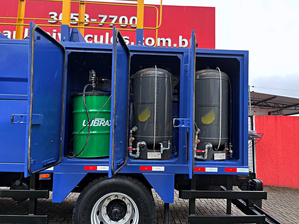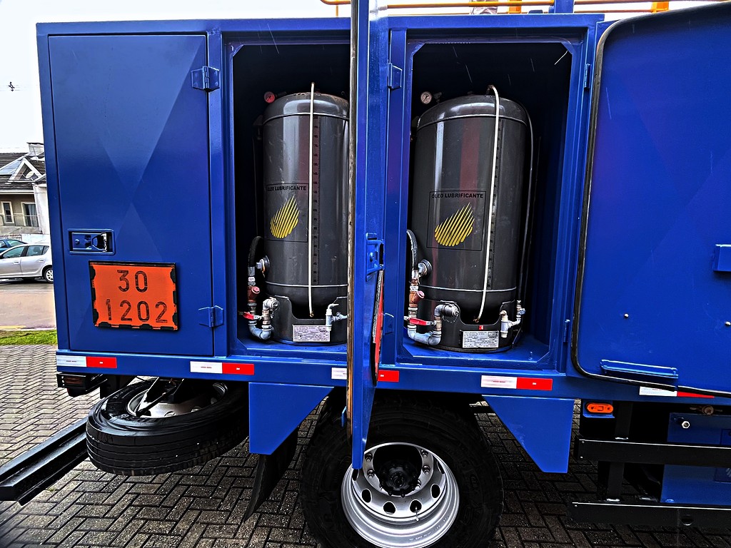Veículo especializado no transporte e fornecimento de combustíveis, lubrificantes, água e insumos essenciais para máquinas e operações pesadas.