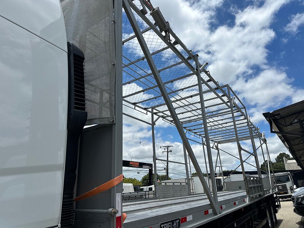 Equipado com cabine alta, oferece máximo conforto para longas jornadas, contando com sofá-cama, amplo espaço interno e acabamento completo. O conjunto VTAV em alumínio garante maior durabilidade, resistência, fácil higienização e total conformidade com as exigências técnicas para o transporte de animais vivos, proporcionando segurança, eficiência e confiabilidade na operação.